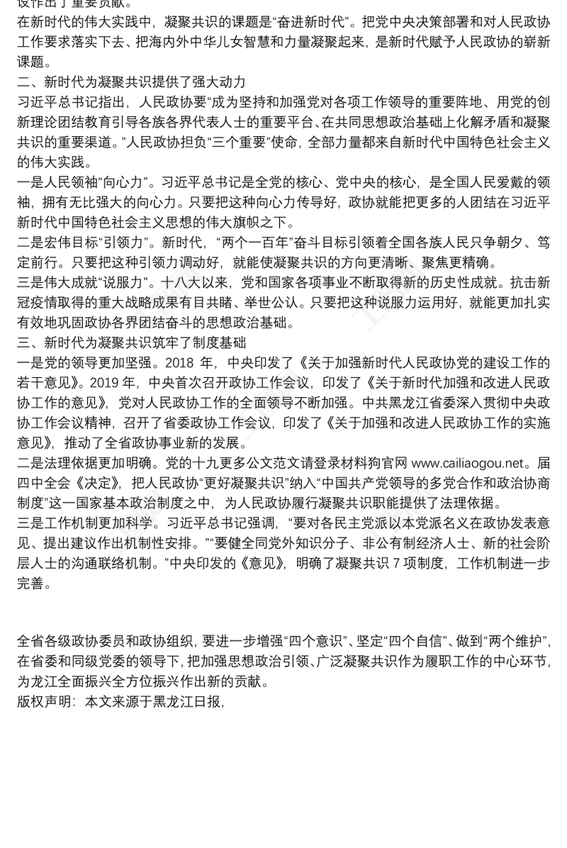 黑龍江省政協(xié)主席:緊扣時代脈搏廣泛凝聚共識