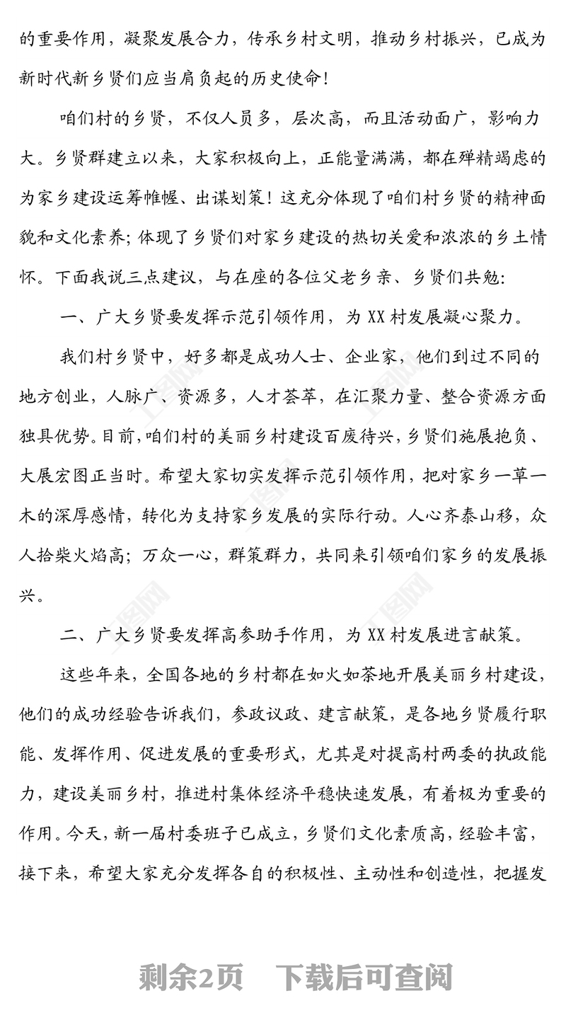 鄉賢代表在XX村村委換屆會議上的講話包含