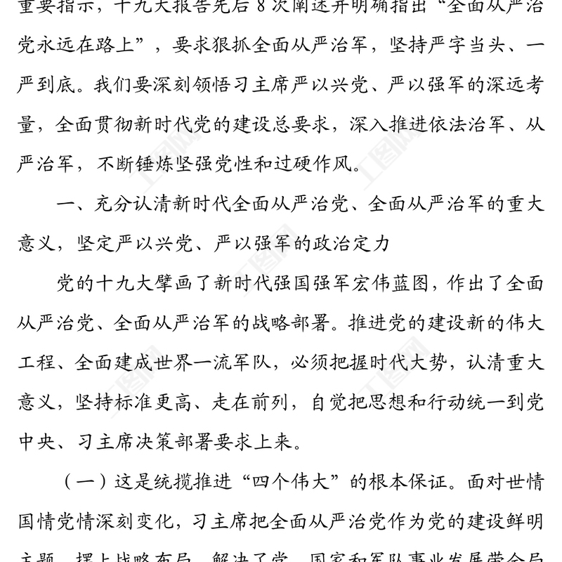貫徹全面從嚴治黨、全面從嚴治軍要求 錘煉堅強黨性和過硬作風 ——“傳承紅色基因、擔當強軍重任”主題教育第三專題教育提綱