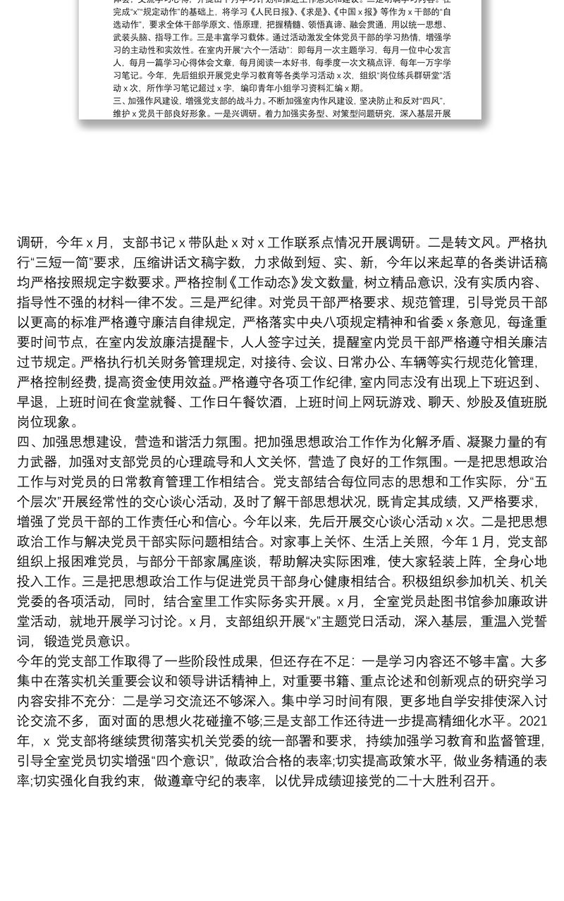 xxx同志在2021年度機關黨支部組織生活會上的總結講話包含