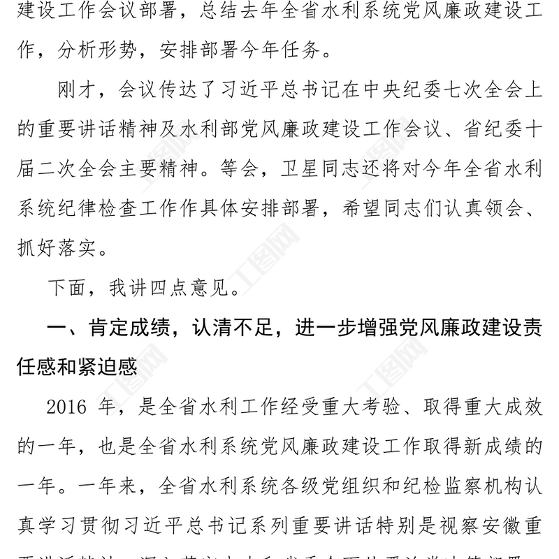 工圖網提供全省水利系統黨風廉政建設工作視頻會議講話稿供會員免費下載。更多精彩黨課PPT素材,盡在工圖網。