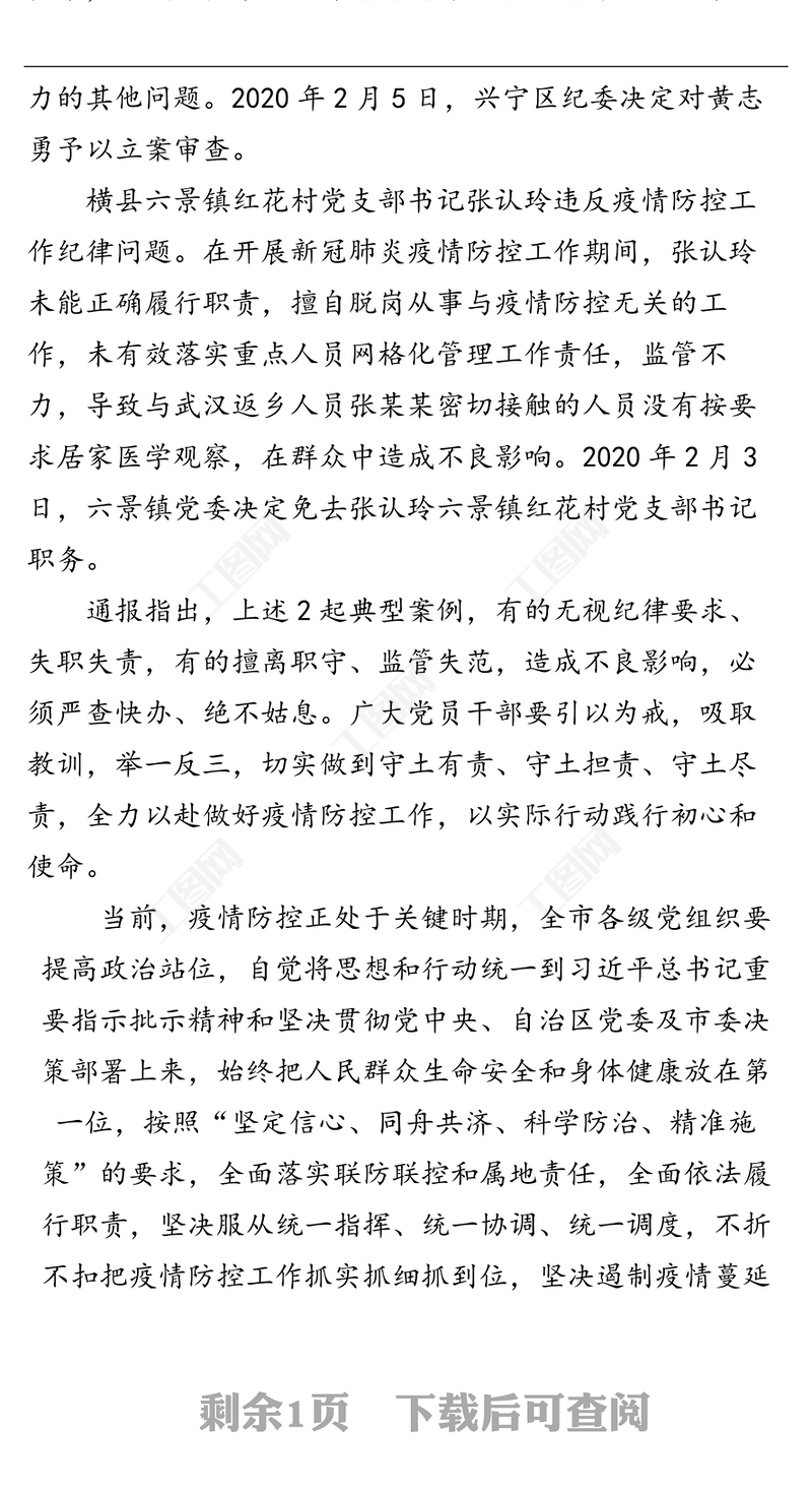 工圖網(wǎng)提供嚴明工作紀律壓實防控責任市紀委通報2起疫情防控履職不力典型案例供會員免費下載。更多精彩黨課PPT素材,盡在工圖網(wǎng)。
