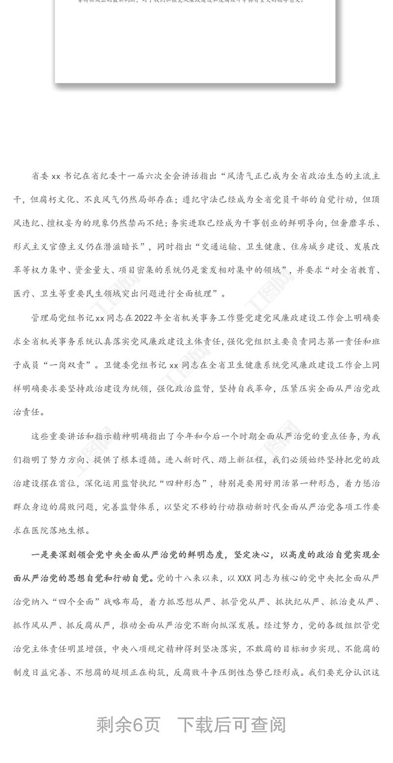 工圖網提供醫院黨委書記在2022年黨建黨風廉政建設工作會和警示教育大會上的講話供會員免費下載。更多精彩黨課PPT素材,盡在工圖網。