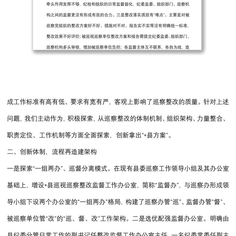 創新體制機制 壓實監督責任 以整改監督的高質量實現巡察工作的高質量——市委巡察工作高質量發展推進會經驗交流材料