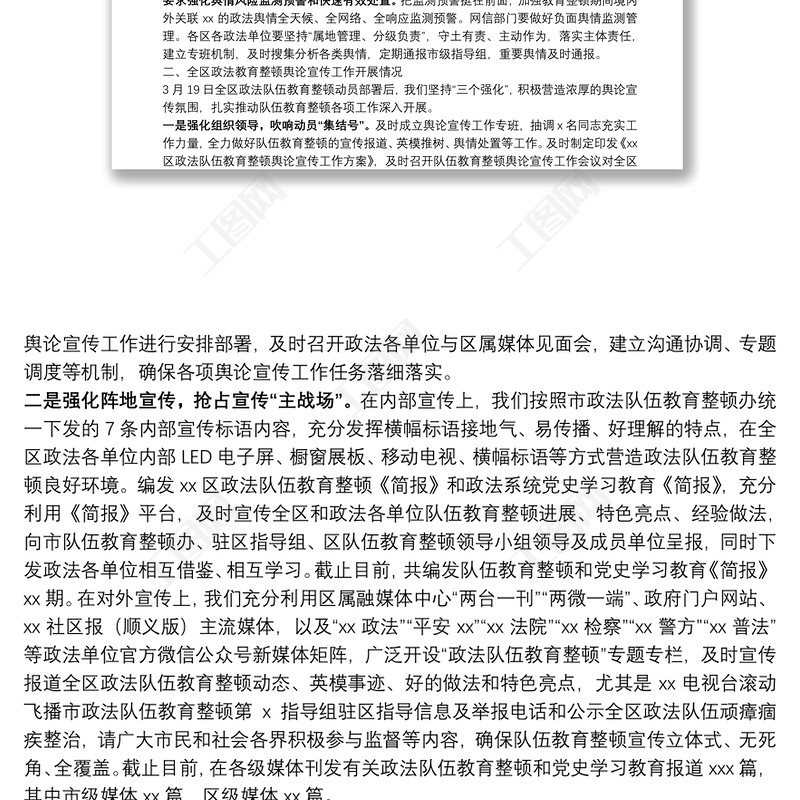 工圖網提供某區政法隊伍教育整頓輿論宣傳工作匯報提綱供會員免費下載。更多精彩黨課PPT素材,盡在工圖網。