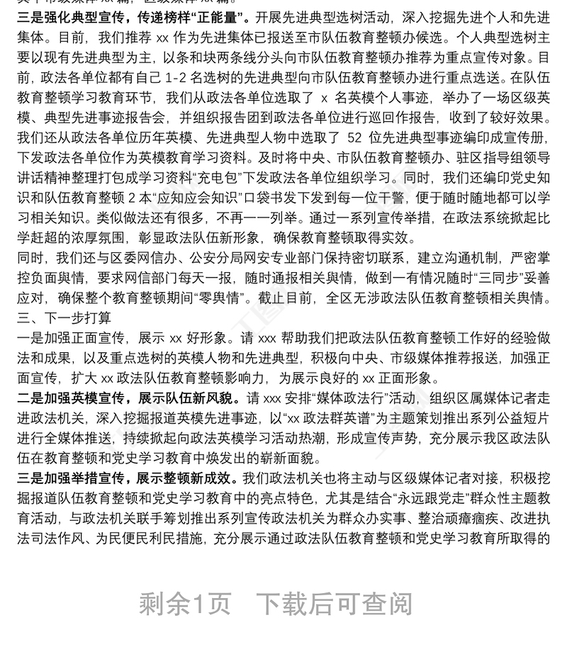 某區政法隊伍教育整頓輿論宣傳工作匯報提綱,教育整頓 Array