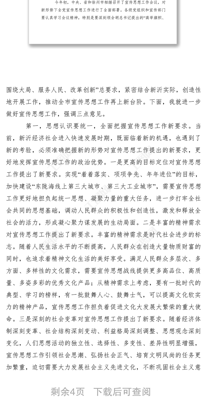 【黨建材料】在全市宣傳思想工作會議上的講話 Array