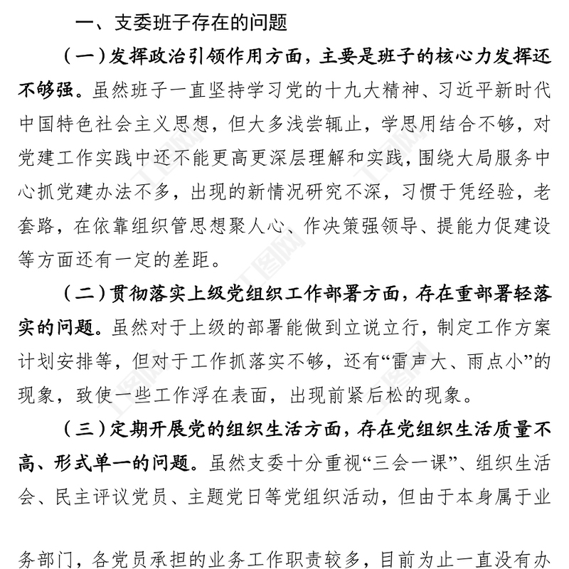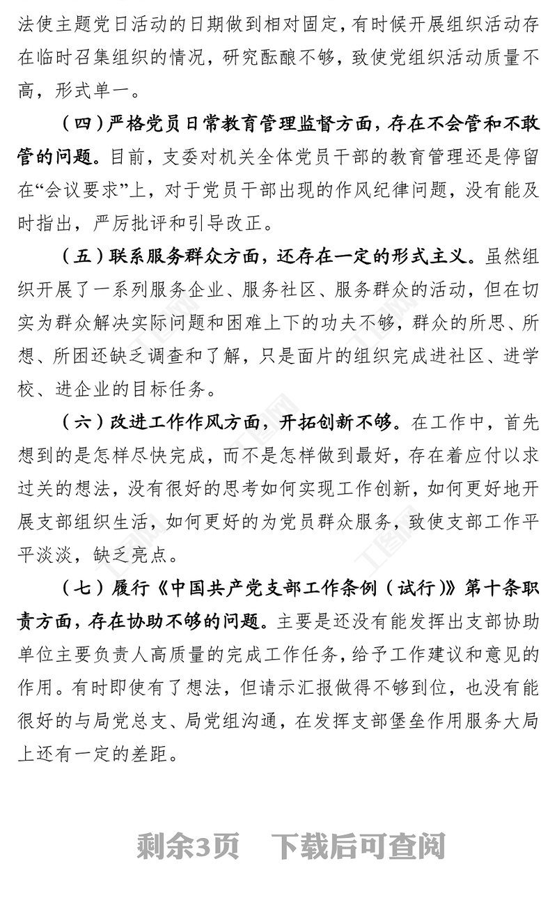 工圖網提供支部委員會領導班子對照檢查材料(范文)供會員免費下載。更多精彩黨課PPT素材,盡在工圖網。