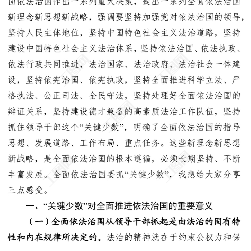 黨員領導學習《推進全面依法治國,發揮法治在國家治理體系和治理能力現代化中的積極作用》心得體會包含