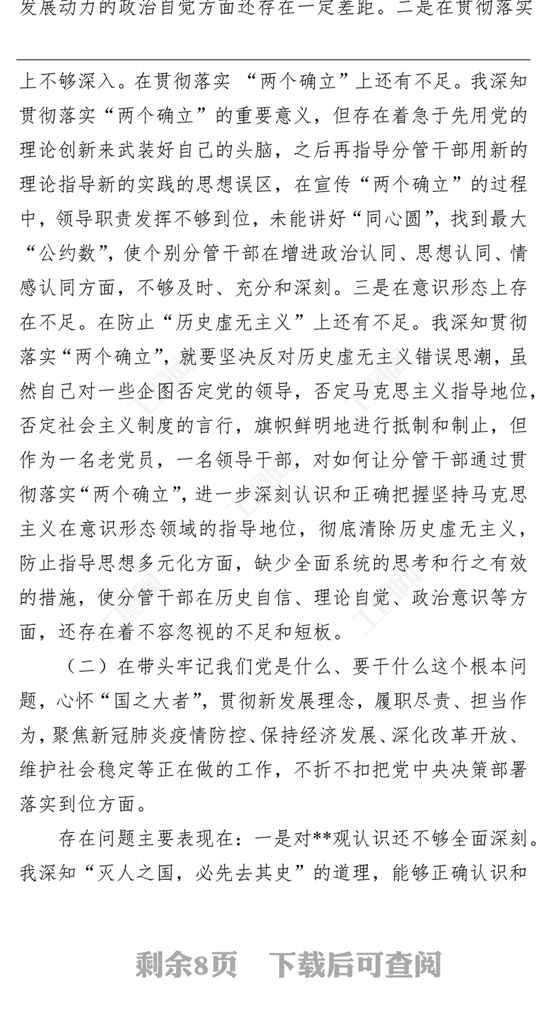 > 對(duì)照檢查 > 縣委書記2021年末五個(gè)帶頭和巡視回頭看專題民主生活會(huì)對(duì)照檢查材料.DOCX 【圖片、文字、動(dòng)畫均可編輯】