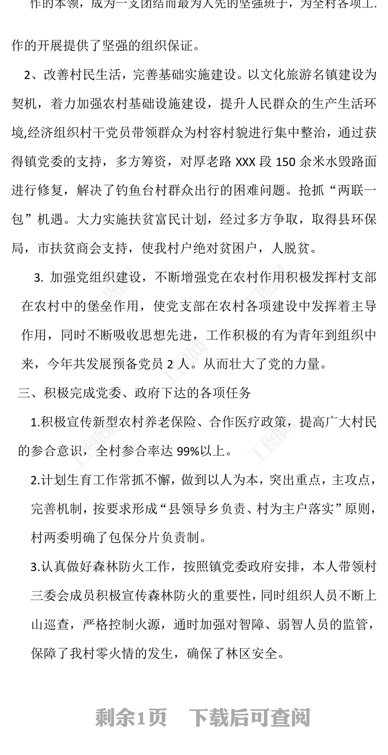 3篇村黨支部書記村委會主任工作述職報告范文包含
