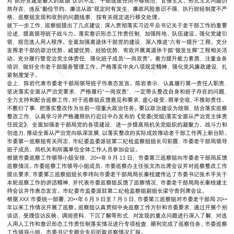市老干部局巡察反饋 巡察老干部局三篇 Array
