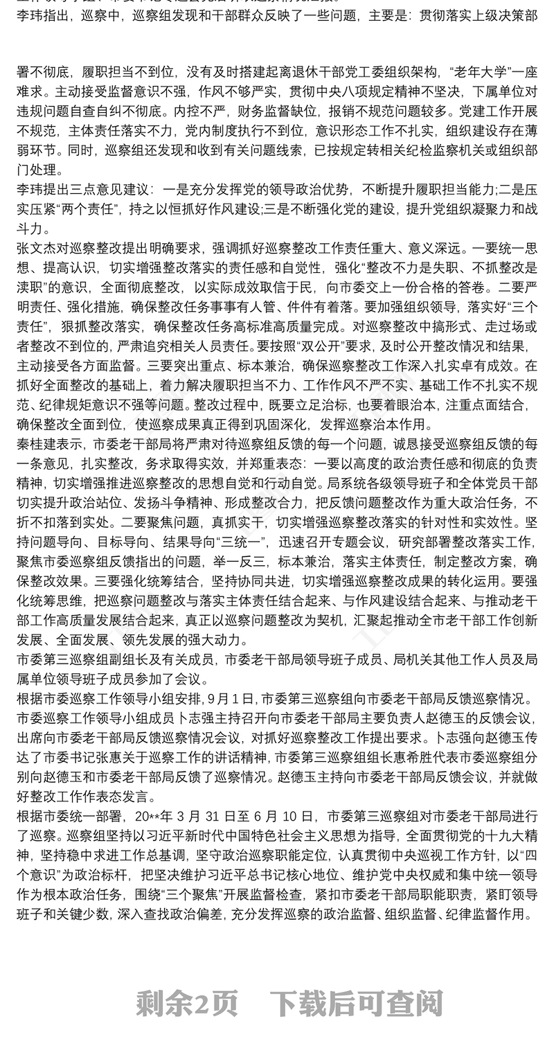 工圖網(wǎng)提供市老干部局巡察反饋 巡察老干部局三篇供會員免費下載。更多精彩黨課PPT素材,盡在工圖網(wǎng)。
