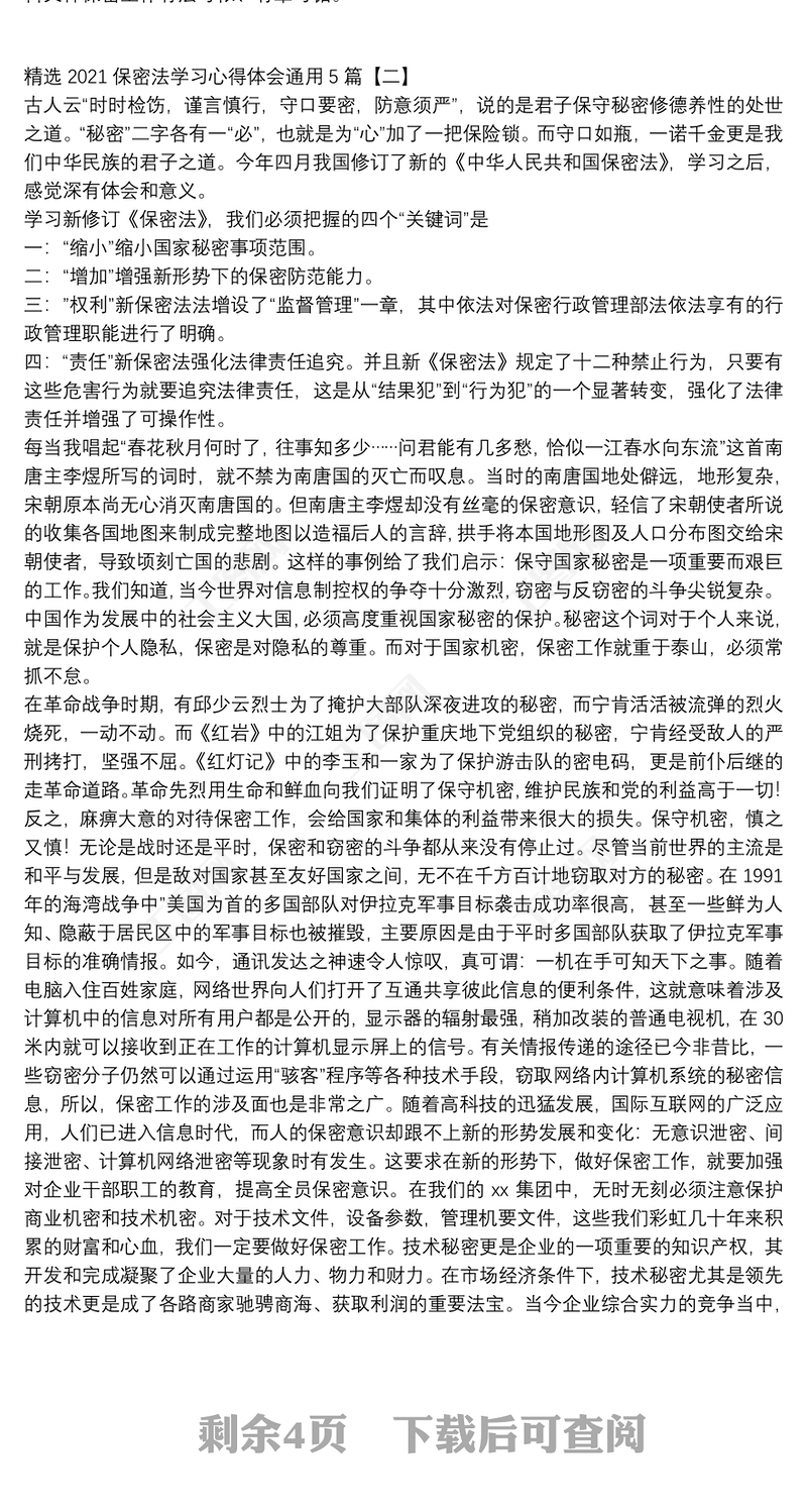 精選2021保密法學(xué)習(xí)心得體會(huì)通用5篇