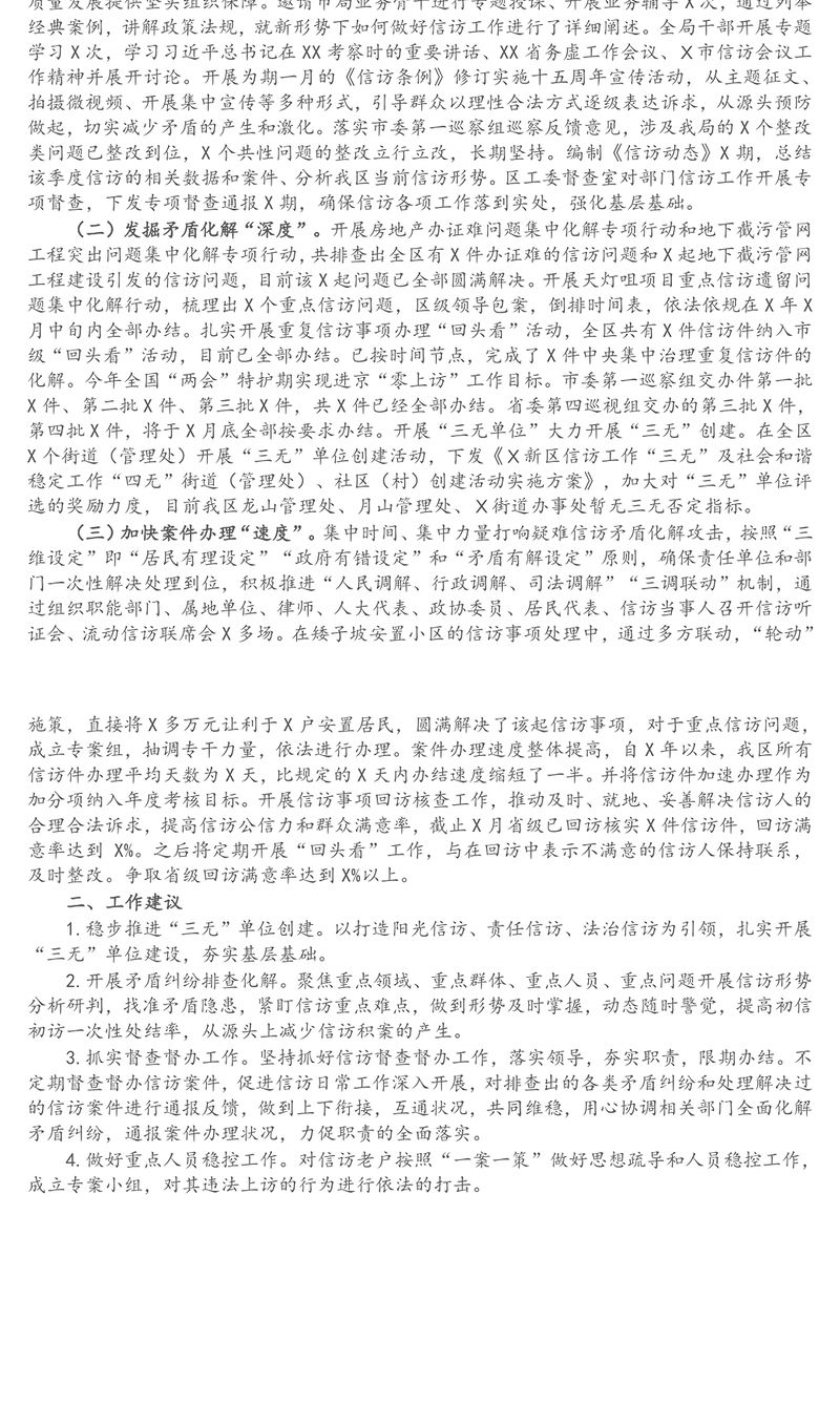 區信訪局2021年半年度信訪業務工作總結報告包含