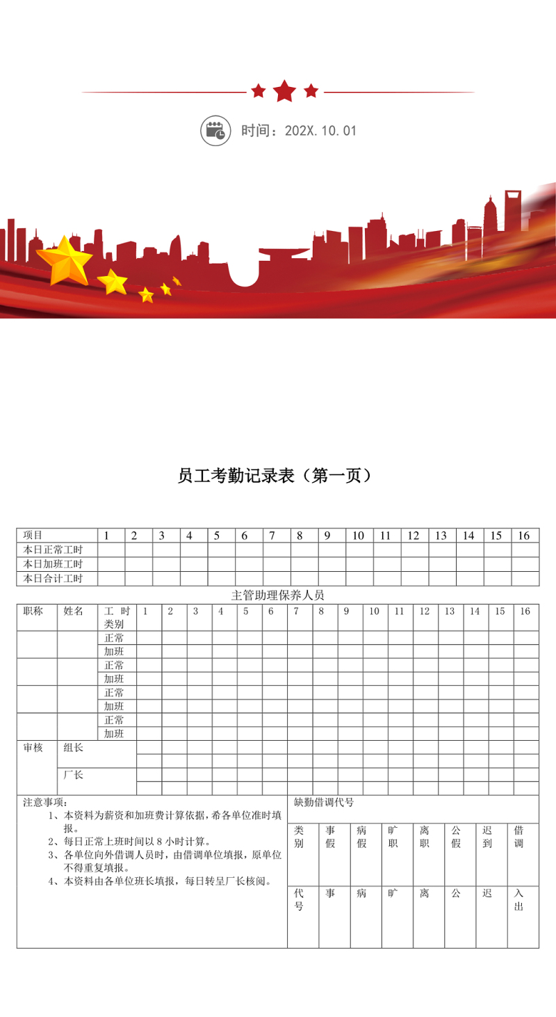 工圖網提供員工考勤記錄表模板供會員免費下載。更多精彩黨課PPT素材,盡在工圖網。