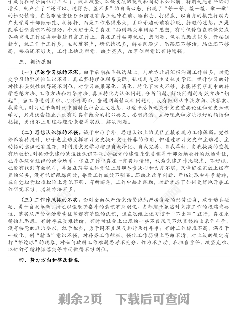 黨支部班子黨史學習教育專題組織生活會對照檢查材料,黨史學習教育,公文范文 Array