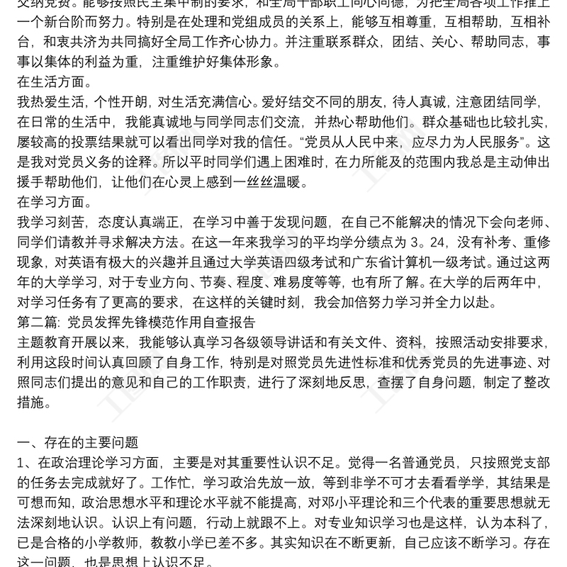黨員發揮先鋒模范作用自查報告范文(精選20篇)