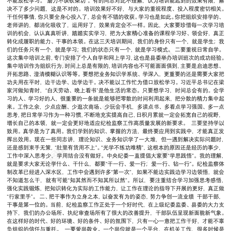 在紀檢監察干部業務能力提升培訓班開班式上的講話包含