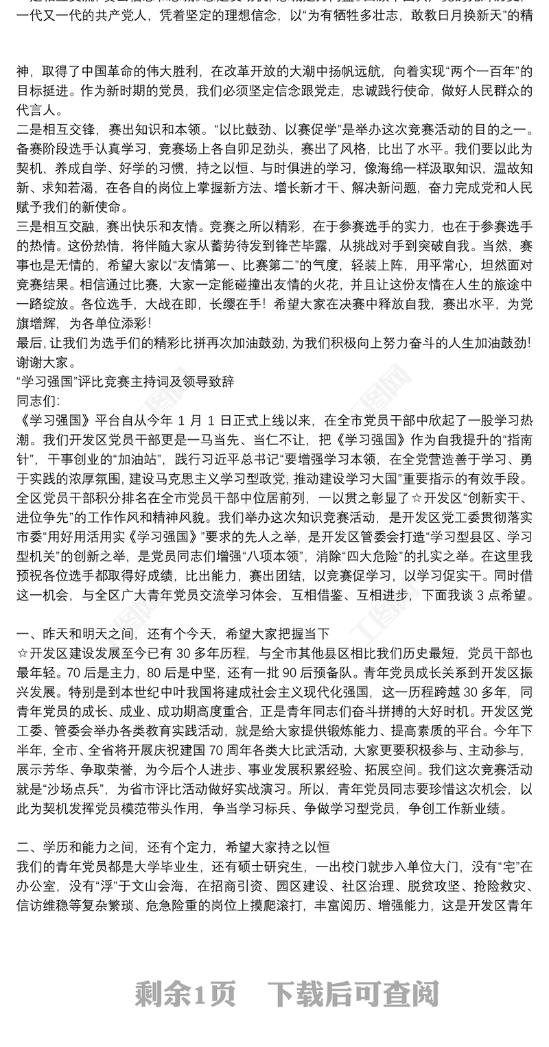 在“學習強國”知識競賽活動上的總結點評講話包含
