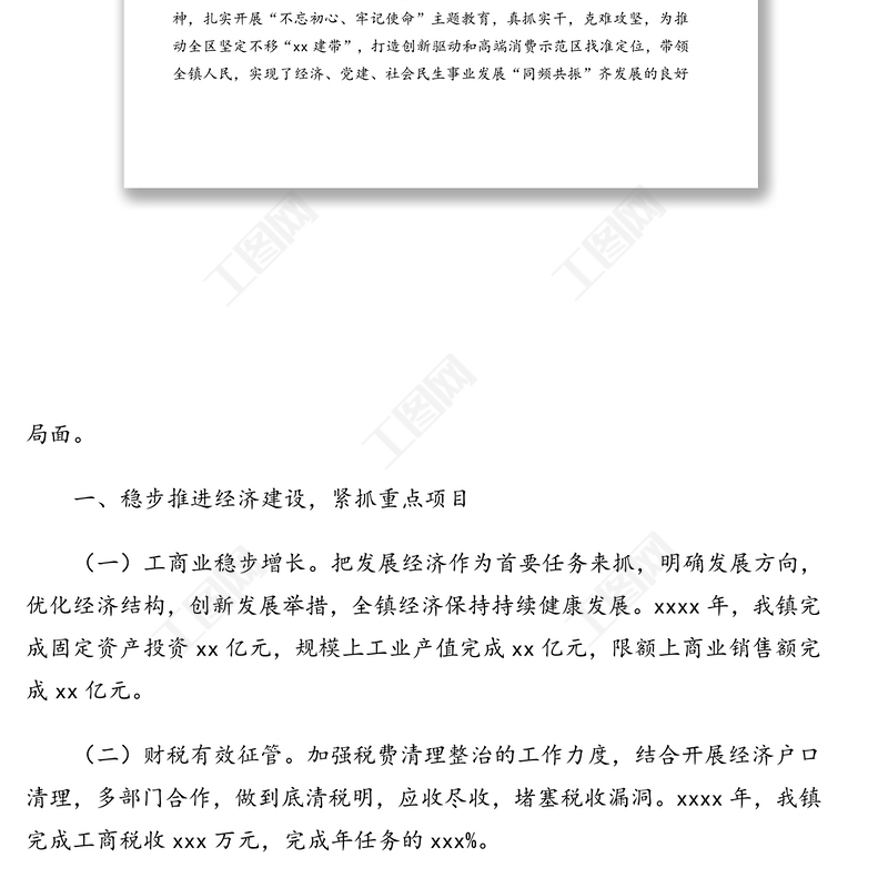 在鎮代表大會會議上的報告(黨委工作報告)(鎮鄉)包含