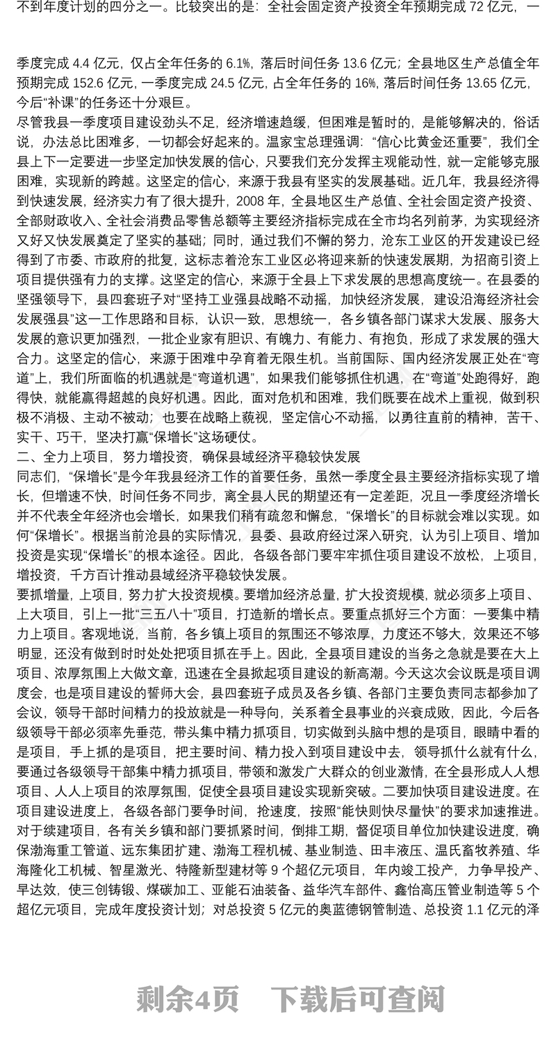 縣長在全縣一季度經濟形勢分析暨重點項目調度會上的講話包含