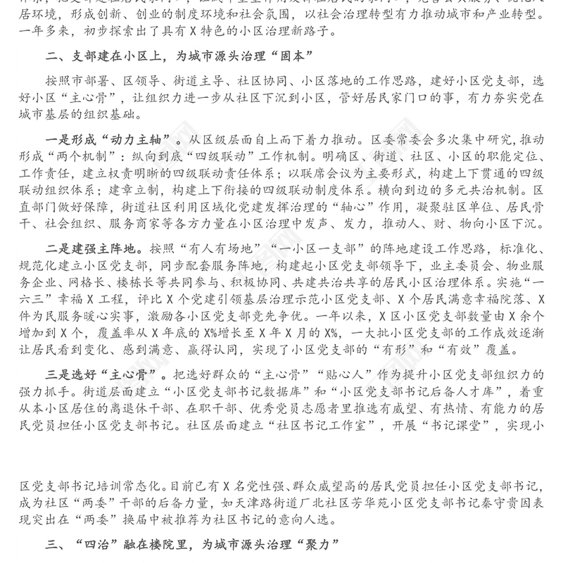 X區黨建引領基層治理工作匯報包含