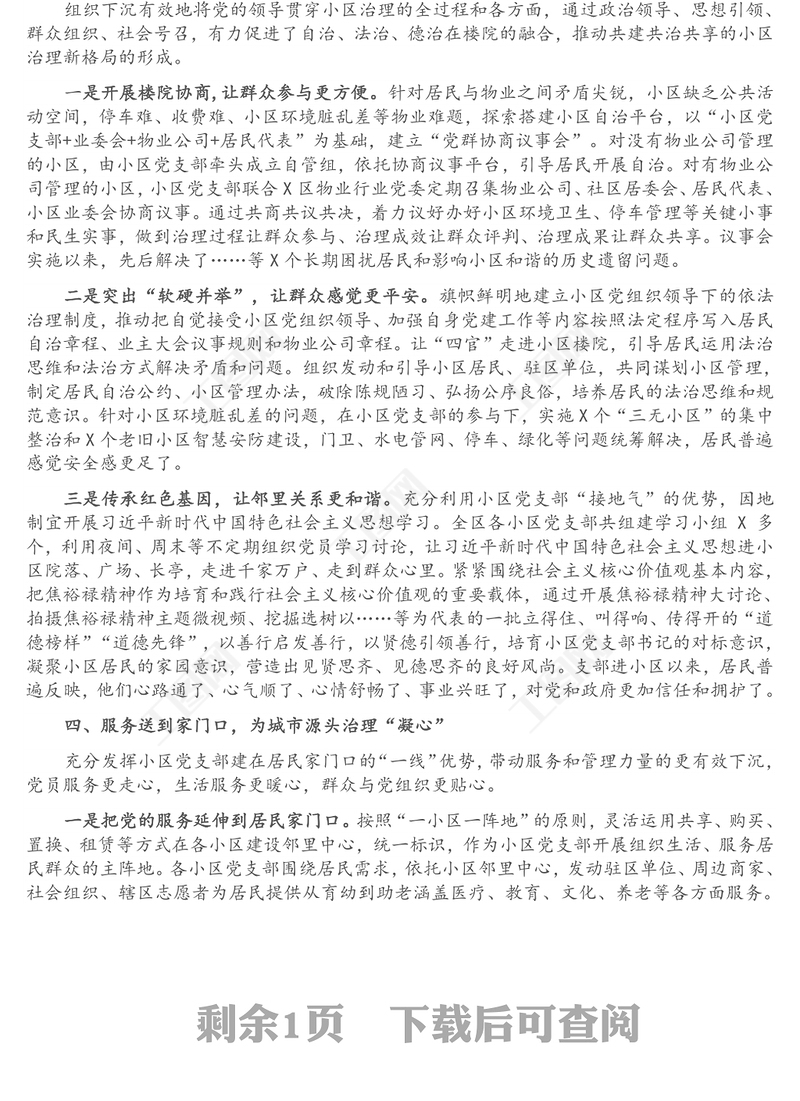 縣黨建引領社區治理提升基層服務工作情況報告包含