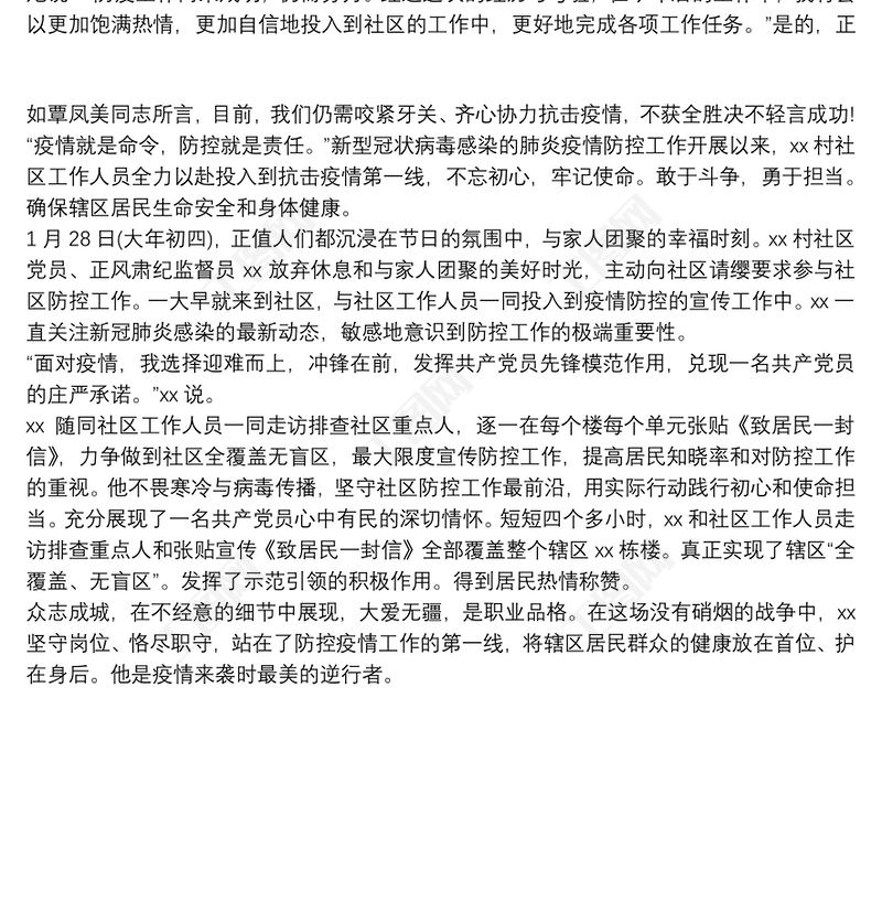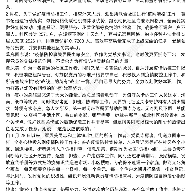工圖網提供社區黨員工作者疫情防控先進事跡材料供會員免費下載。更多精彩黨課PPT素材,盡在工圖網。