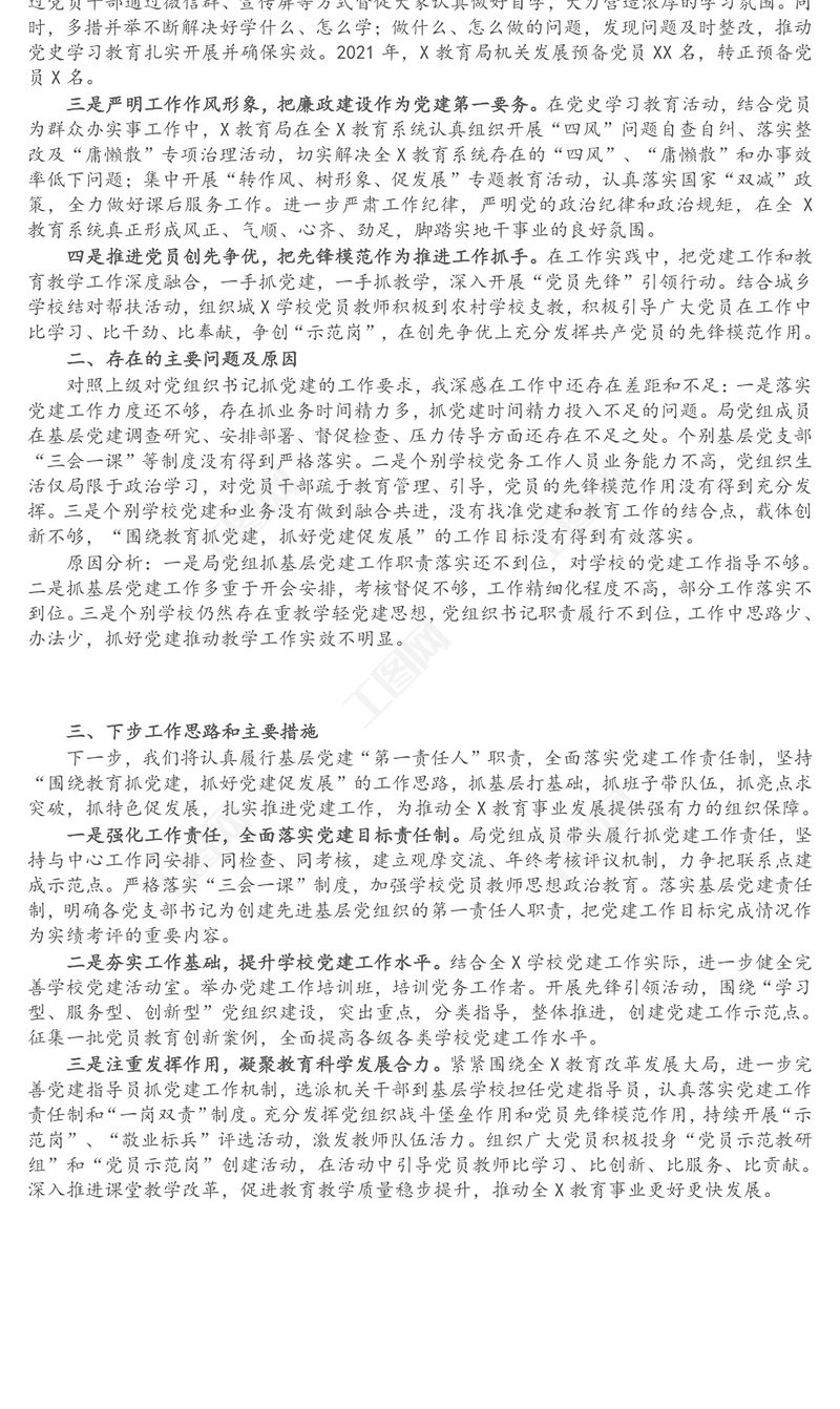 工圖網提供2021年度教育局黨組書記抓基層黨建工作述職報告供會員免費下載。更多精彩黨課PPT素材,盡在工圖網。