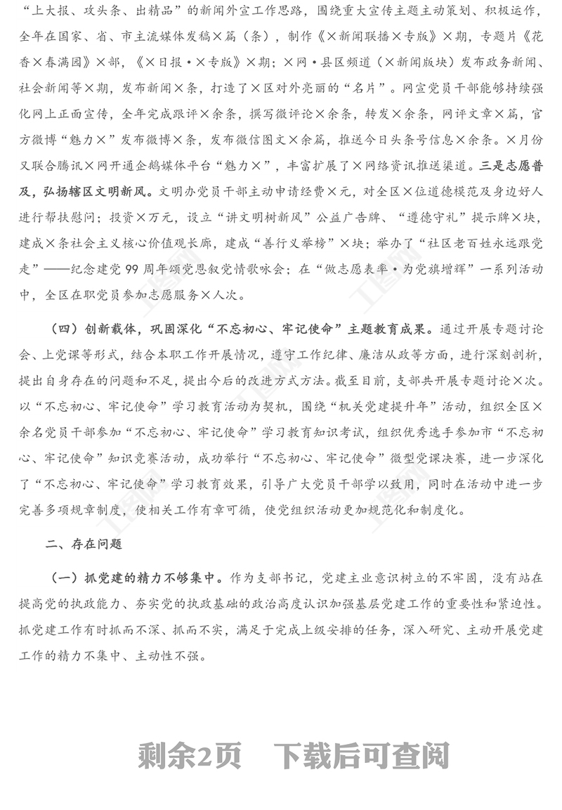 工圖網提供區委宣傳部黨支部書記抓基層黨建工作述職報告供會員免費下載。更多精彩黨課PPT素材,盡在工圖網。