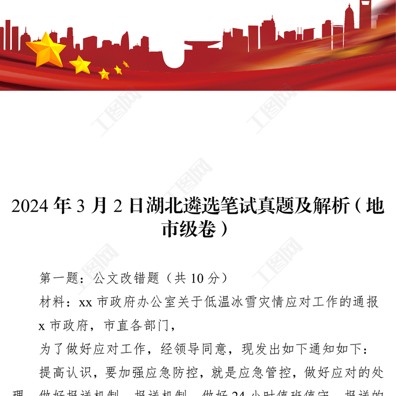 工圖網提供2024年3月2日湖北遴選筆試真題及解析(地市級卷)供會員免費下載。更多精彩黨課PPT素材,盡在工圖網。