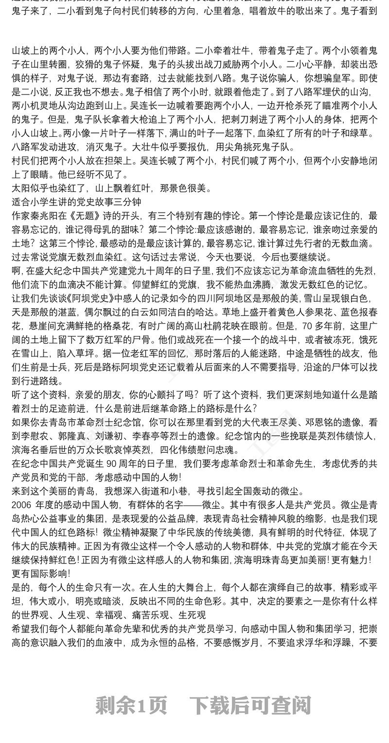 適合小學(xué)生講的黨史故事三分鐘 Array