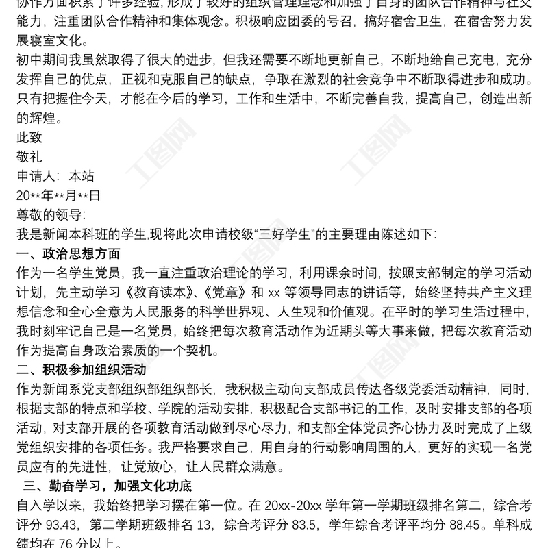 工圖網(wǎng)提供三好學(xué)生申請(qǐng)理由 3篇供會(huì)員免費(fèi)下載。更多精彩黨課PPT素材,盡在工圖網(wǎng)。