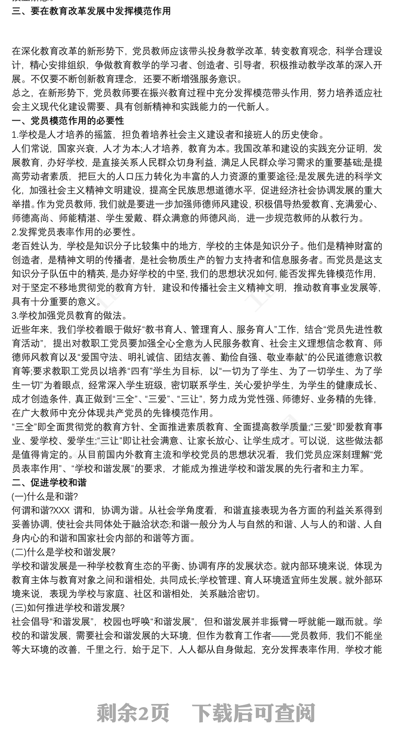 20xx年黨課講稿:黨員教師如何發(fā)揮先鋒模范作用3篇 Array