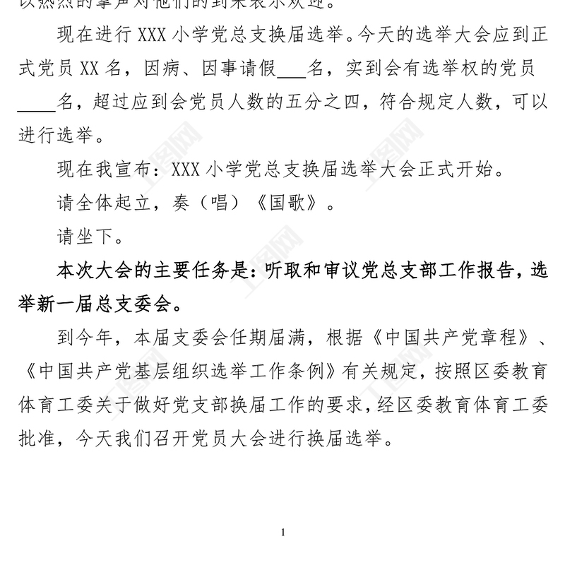工圖網提供黨支部換屆選舉主持詞供會員免費下載。更多精彩黨課PPT素材,盡在工圖網。