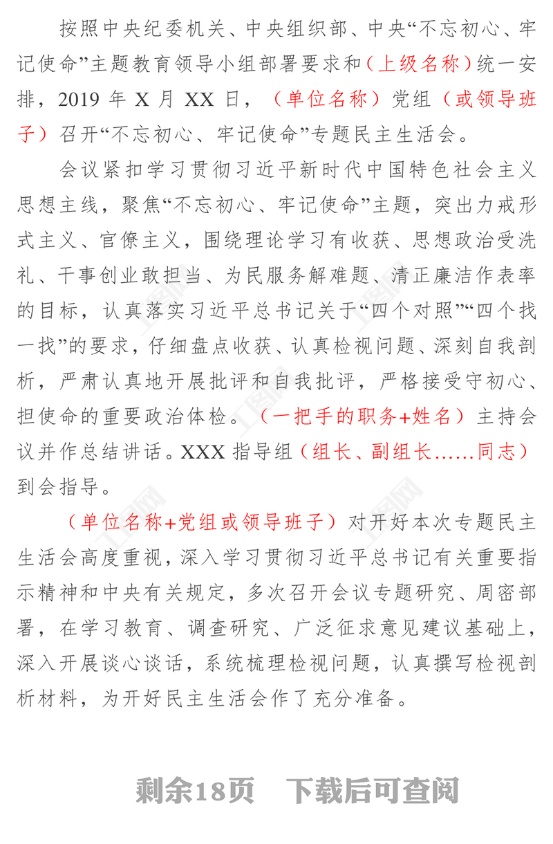 2022組織生活會民主生活會談心談話提綱2021關(guān)于深入推進(jìn)不忘初心牢記使命主題教育工作實(shí)施方案2022縣委書記涉糧問題專項(xiàng)巡察專題民主生活會對照檢查材料2022縣委領(lǐng)導(dǎo)防范化解重大風(fēng)險(xiǎn)做好安全生產(chǎn)工作專題民主生活會對照檢查材料2022開展黨史學(xué)習(xí)教育專題民主生活會集中學(xué)習(xí)會議記錄2023黨課講稿不忘初心牢記使命2023組織生活會民主生活會2023新時(shí)代中國特色社會主義思想專題民主生活會講話2023民主生活會組織生活會2023主題教育民主生活會簡報(bào)2023民主生活會 組織生活會2023組織生活會 民主生活會2023新時(shí)代中國特色社會主義思想專題民主生活會專項(xiàng)報(bào)告2023新時(shí)代中國特色社會主義思想專題民主生活會對照