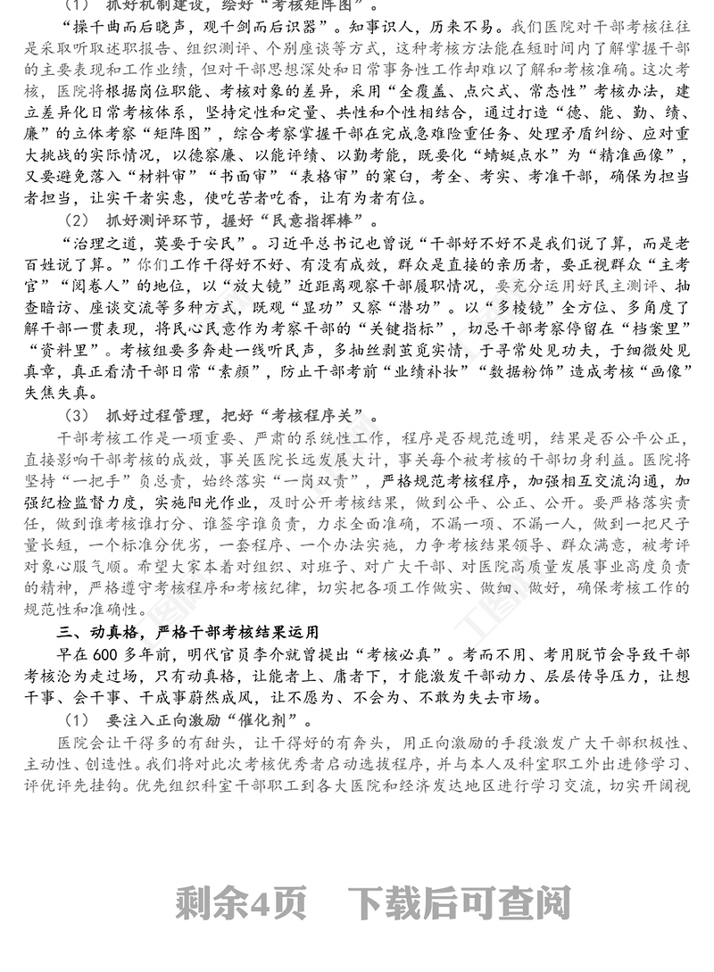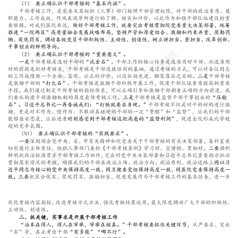 黨委書記在X大型醫院中層干部考核工作會講話 Array