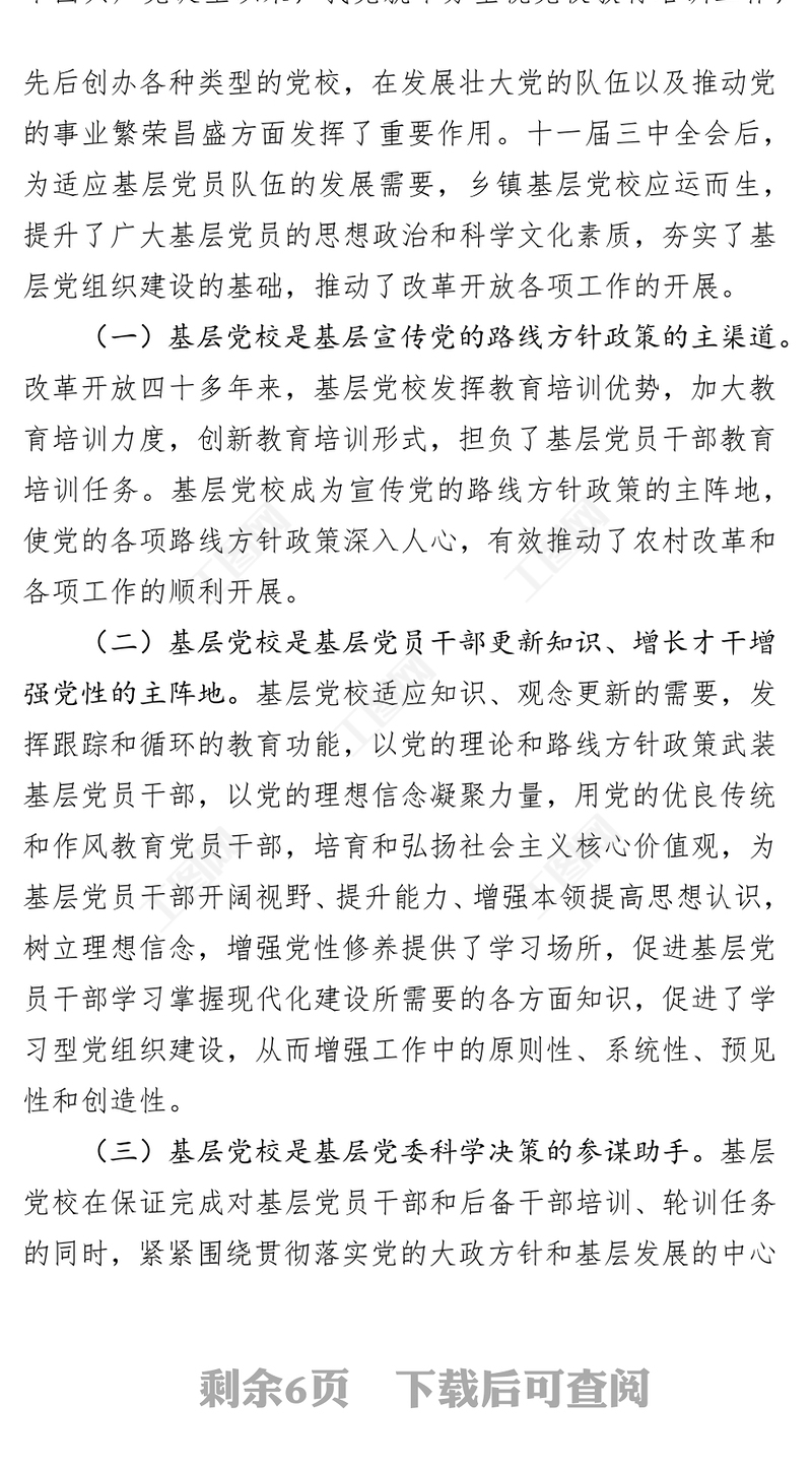 關于加強基層黨校建設的思考和建議,基層黨建工作,基層黨建工作,公文范例,領導述職報告,機關公文寫作 Array