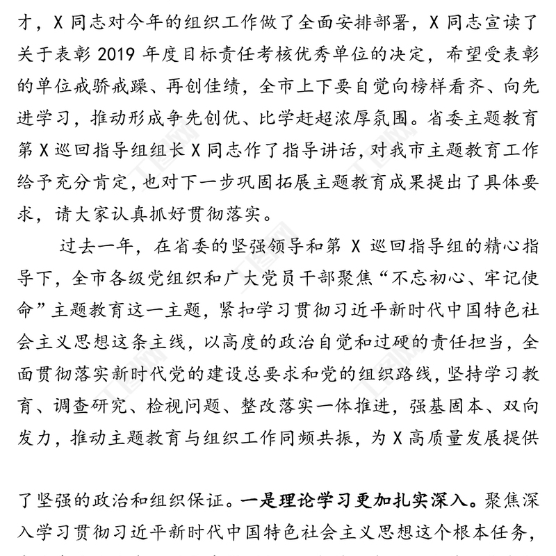 在全市“不忘初心、牢記使命”主題教育總結暨組織工作會議上的講話,主題教育總結,公文范例,領導述職報告,機關公文寫作 Array