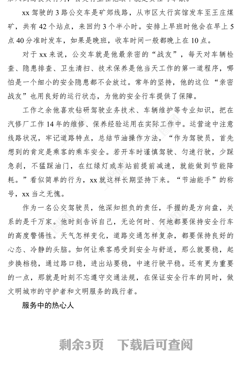 【先進事跡】公交車駕駛員先進個人典型事跡材料 Array