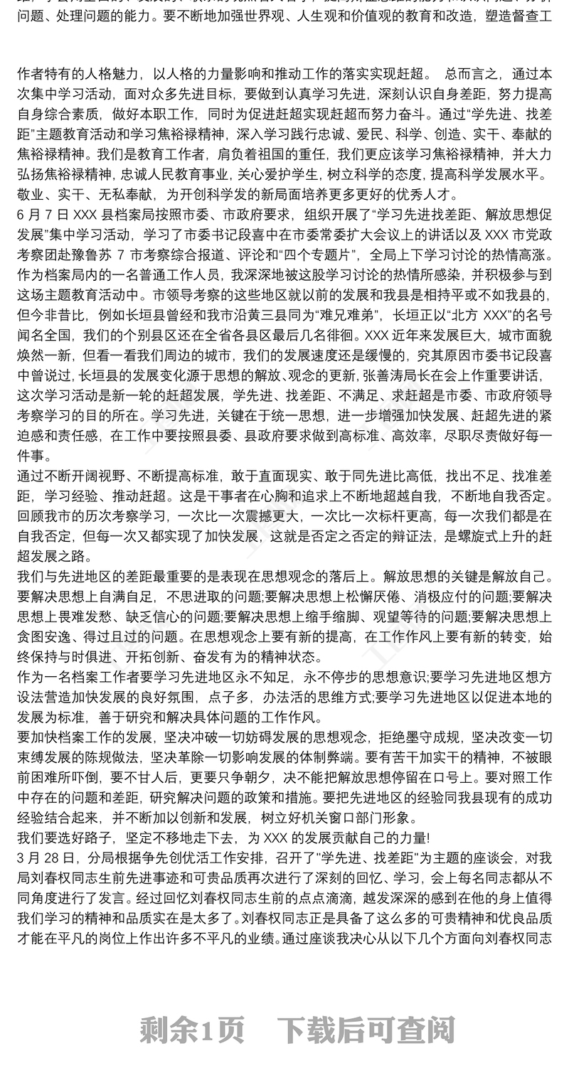 學先進、找差距、補短板、促發展心得體會