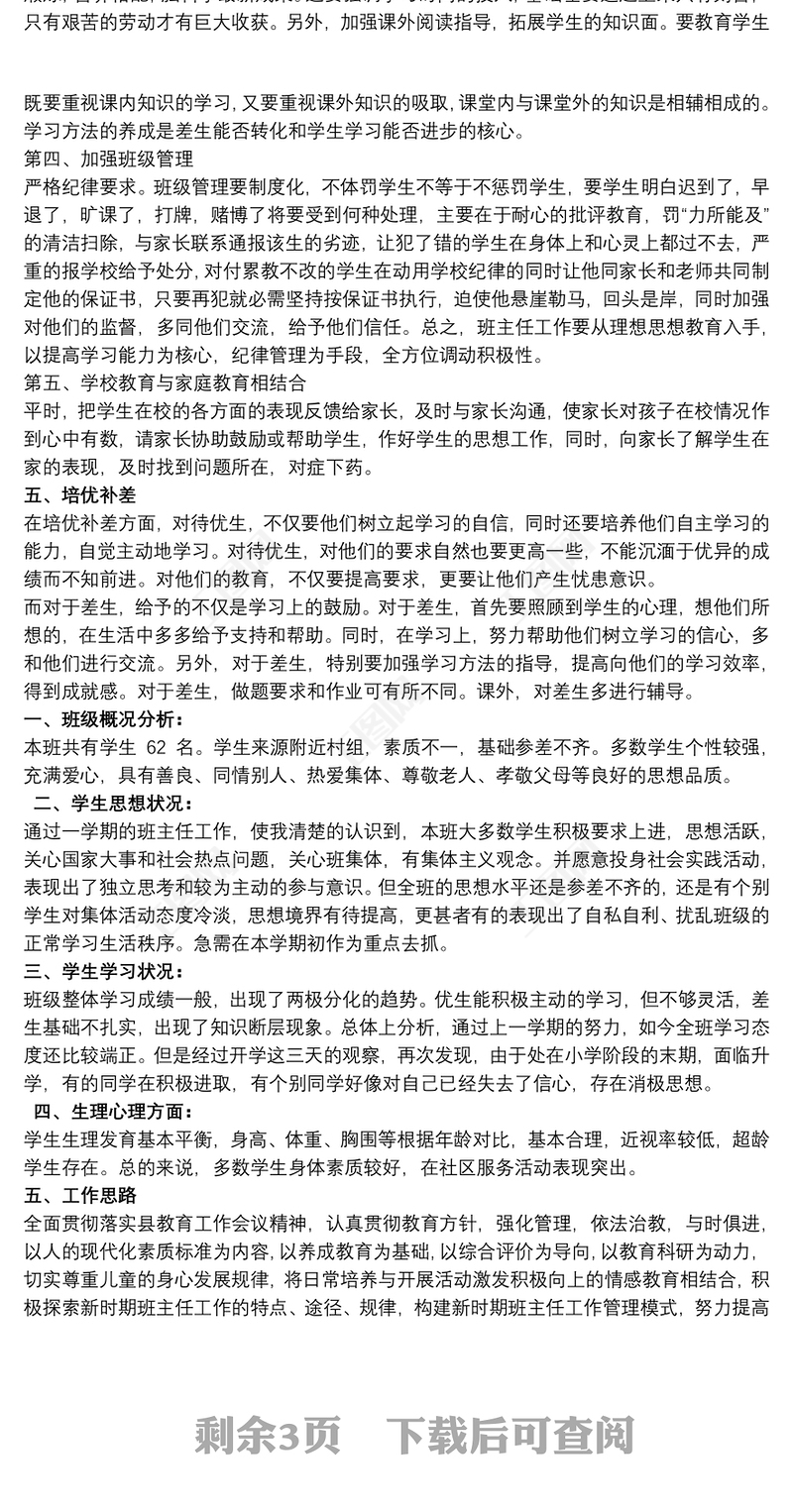 高三第一學期班主任工作計劃_高三下學期班主任工作計劃包含