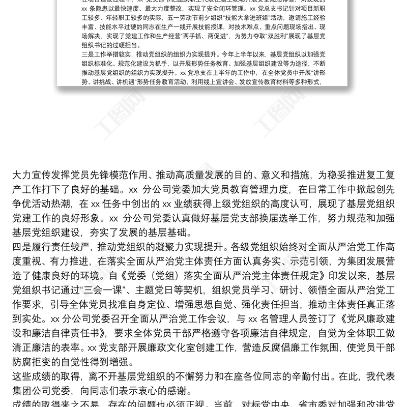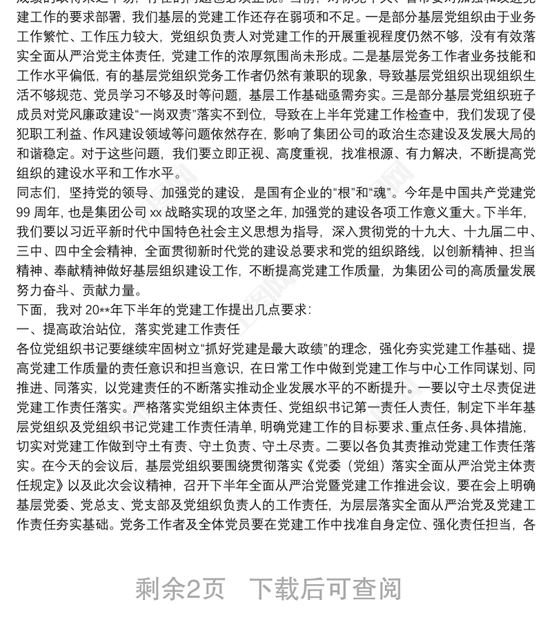 工圖網提供國企黨委書記在20**年上半年基層黨組織書記抓黨建述職會上的講話供會員免費下載。更多精彩黨課PPT素材,盡在工圖網。