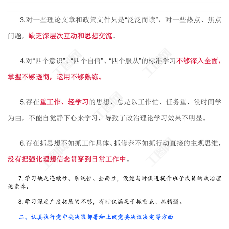 2021民主生活會、組織生活會問題清單及原因分析185條包含