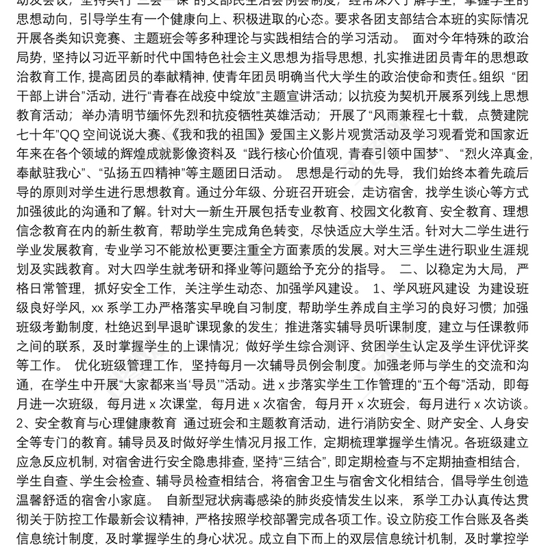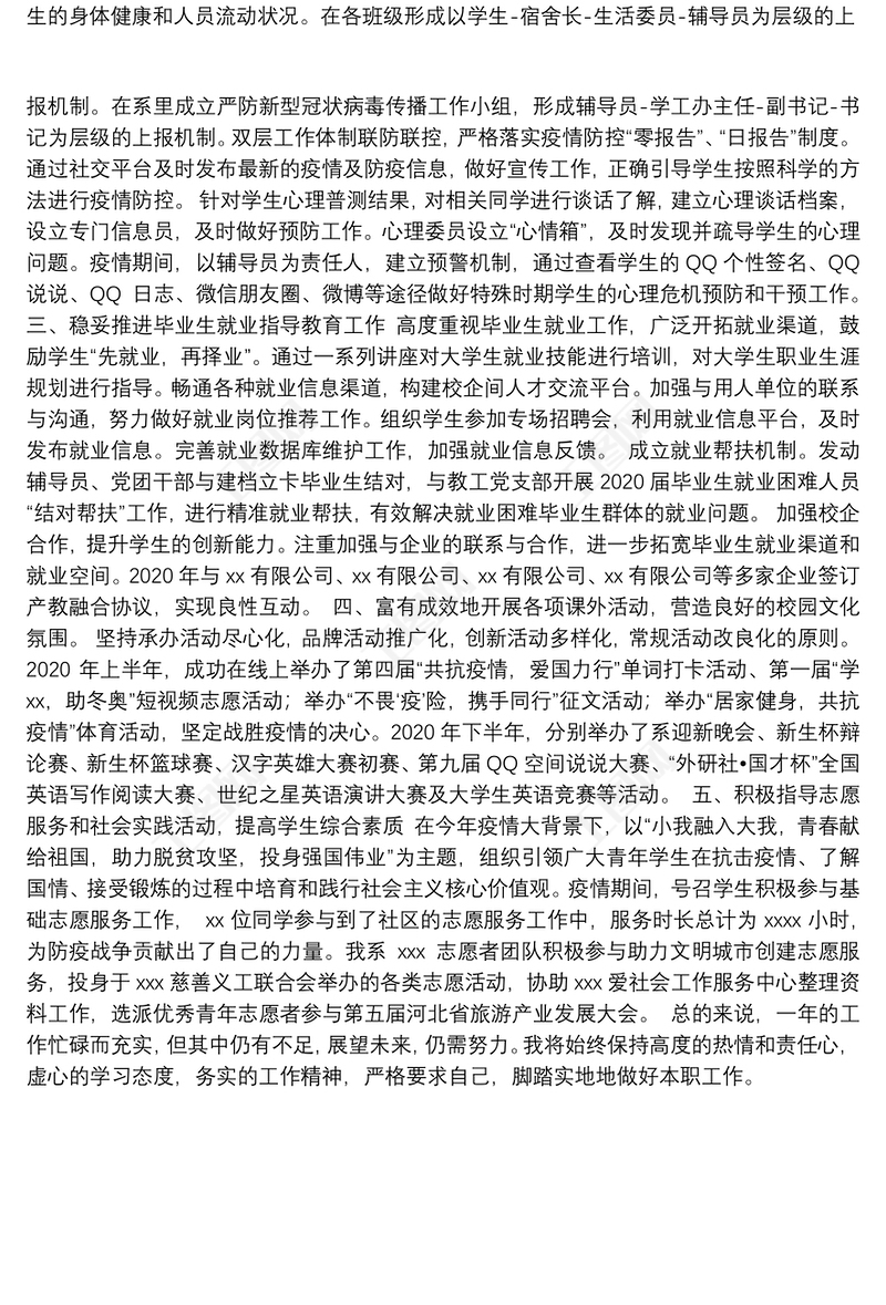 系黨總支副書記2020年度學生工作總結(高校中層干部述職1)包含