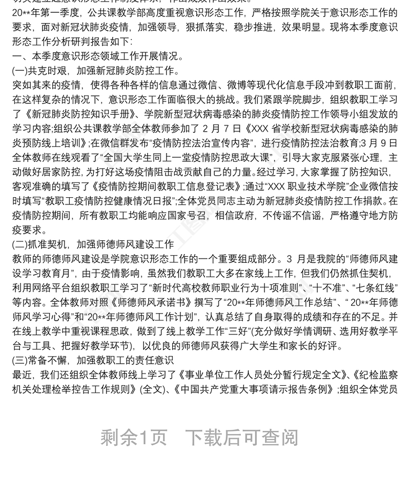 20xx年第一季度意識形態(tài)領域形勢分析的研判報告
