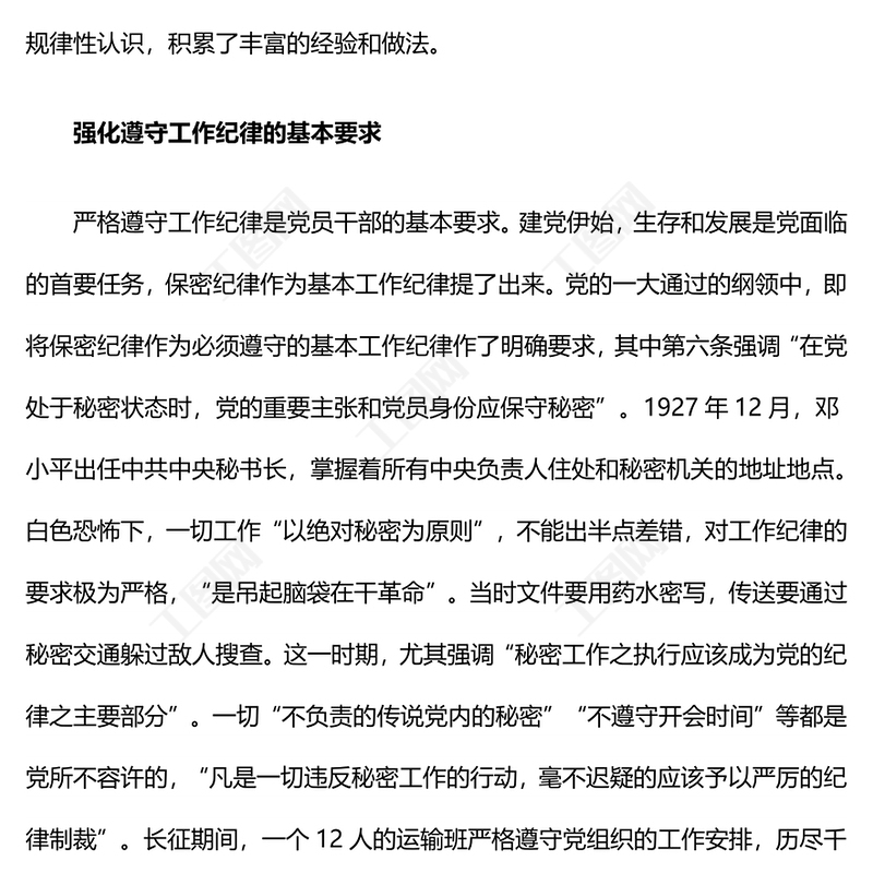 黨課講稿 > 黨史上的工作紀律建設PPT大氣簡潔2024年黨紀學習教育專題課件(講稿).DOCX