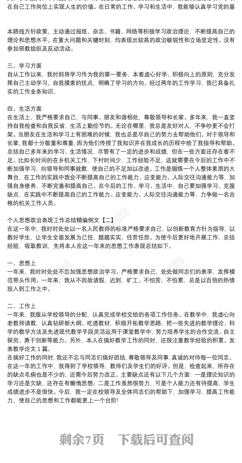 工圖網提供個人思想政治表現工作總結精編例文供會員免費下載。更多精彩黨課PPT素材,盡在工圖網。