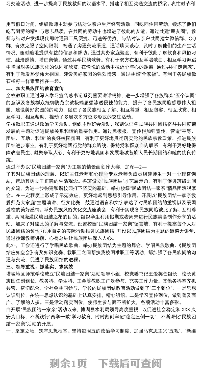 202120xx年新版民族團(tuán)結(jié)一家親活動(dòng)總結(jié)